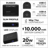 Our 10,000mAh power bank strikes the perfect balance between power and portability, weighing only 199g / 7oz. Featuring USB-C PD (20W) and USB-A QC 3.0 (18W) outputs, it recharges smartphones, tablets, and more in record time. Its rubberized body and integrated LCD battery percentage display make it as intuitive as it is durable.