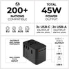 With 3x USB-C and 2x USB-A ports delivering up to 45W, it functions as powerful standalone chargers or as versatile adapters, ensuring fast, multi-device charging at home or abroad.