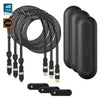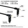 inCharge® XL 3m / 10ft - 100W, 6in1 ultra long cable - Urban Black - InCharge XL 3m black braided 6-in-1 charging cable with silicone pouch and metal connector ends. - Rolling Square
