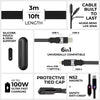 inCharge® XL 3m / 10ft - 100W, 6in1 ultra long cable - Urban Black - White 3m inCharge XL ultra long 6-in-1 charging cable with compact black carrying case and cable clip. - Rolling Square