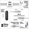 inCharge® XL 3m / 10ft - 100W, 6in1 ultra long cable - Urban Black - White inCharge XL 3m cable with protective tied cap, integrated adapters, and tidying Velcro strap. - Rolling Square