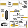 inCharge® XL 3m / 10ft - 100W, 6in1 ultra long cable - Urban Black - Yellow 3m inCharge XL 6-in-1 charging cable with USB-A, USB-C, Lightning connectors and black protective case. - Rolling Square